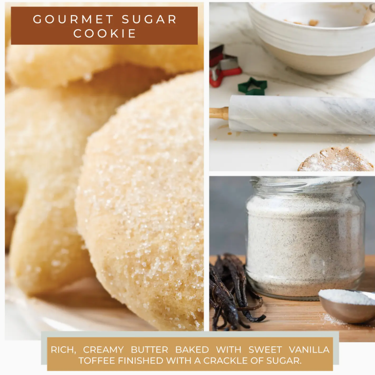 Rich, creamy butter baked with sweet vanilla toffee finished with a crackle of sugar.