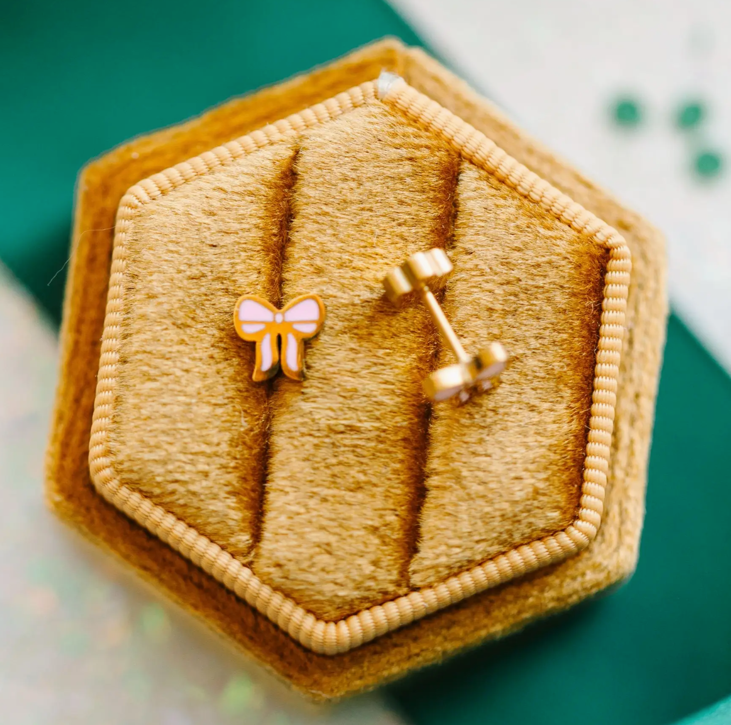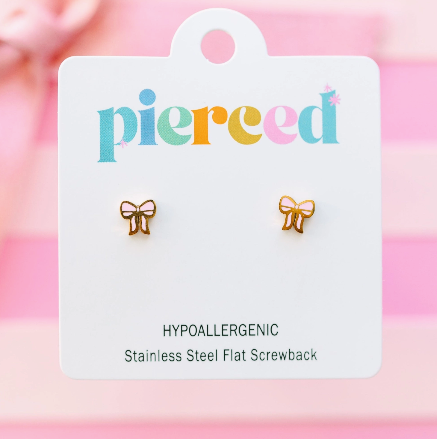 • Load image into Gallery viewer, Sensitive Skin - Pink Bow Earrings