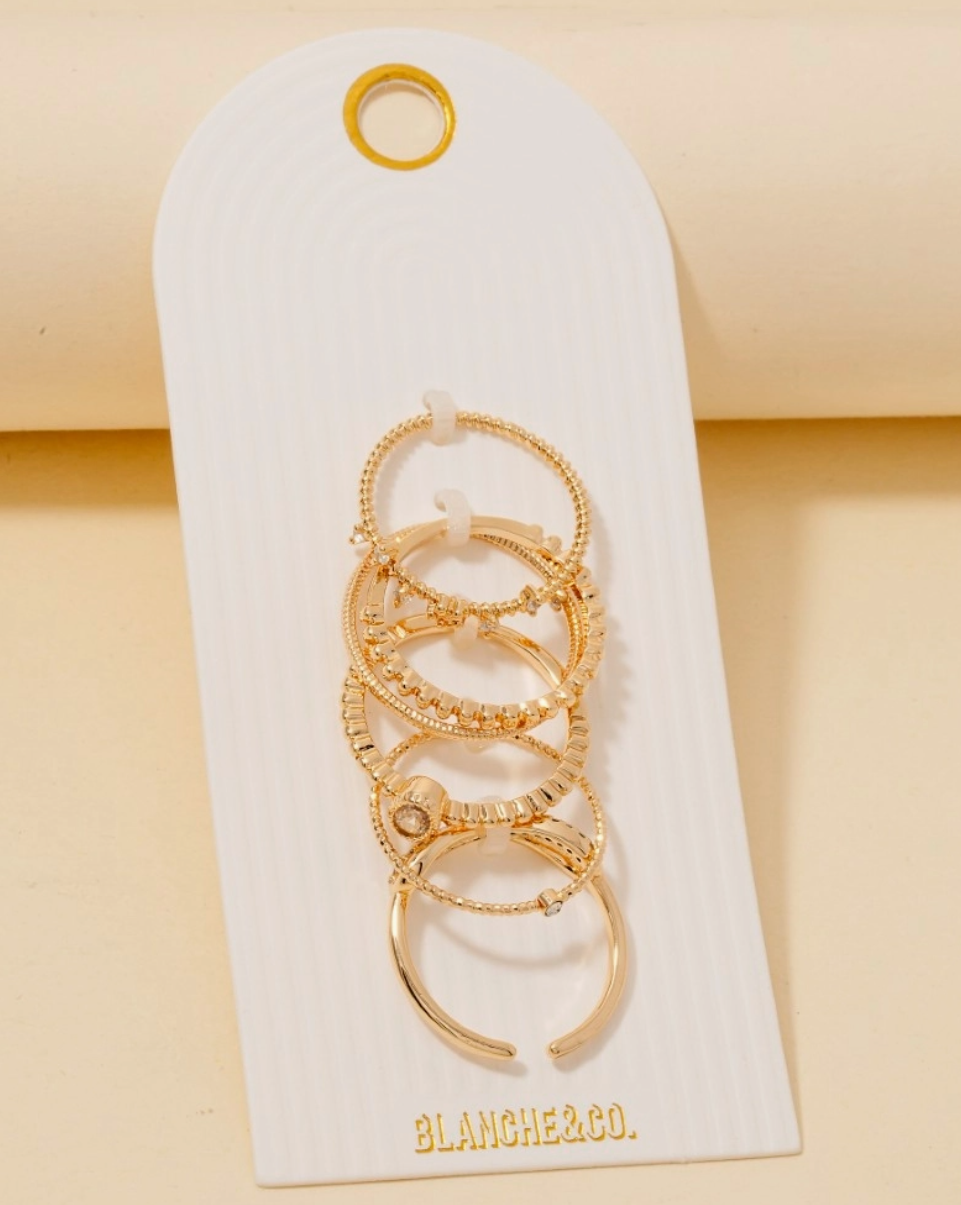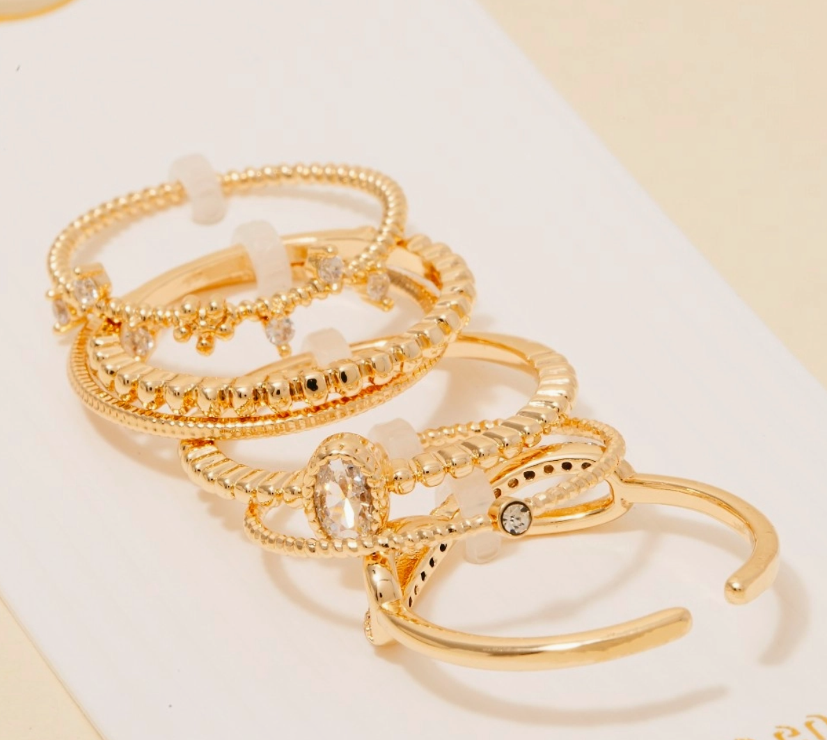 An instant wardrobe staple, this ring set flaunts a luxurious 5pc assorted cubic zirconia band rings set design. Perfect for adding a touch of glamour and sophistication to any outfit, this ring set is a must-have.